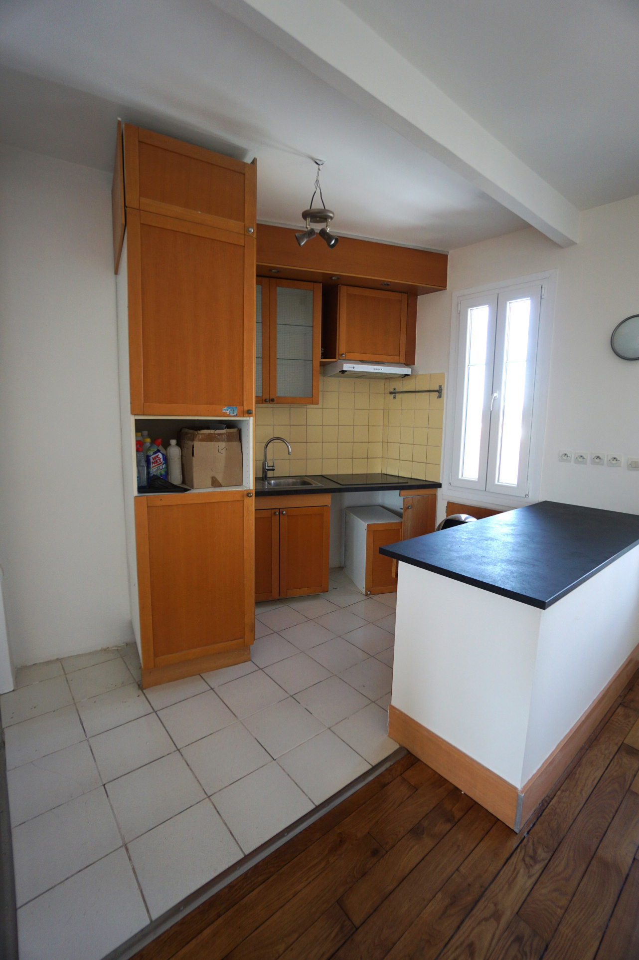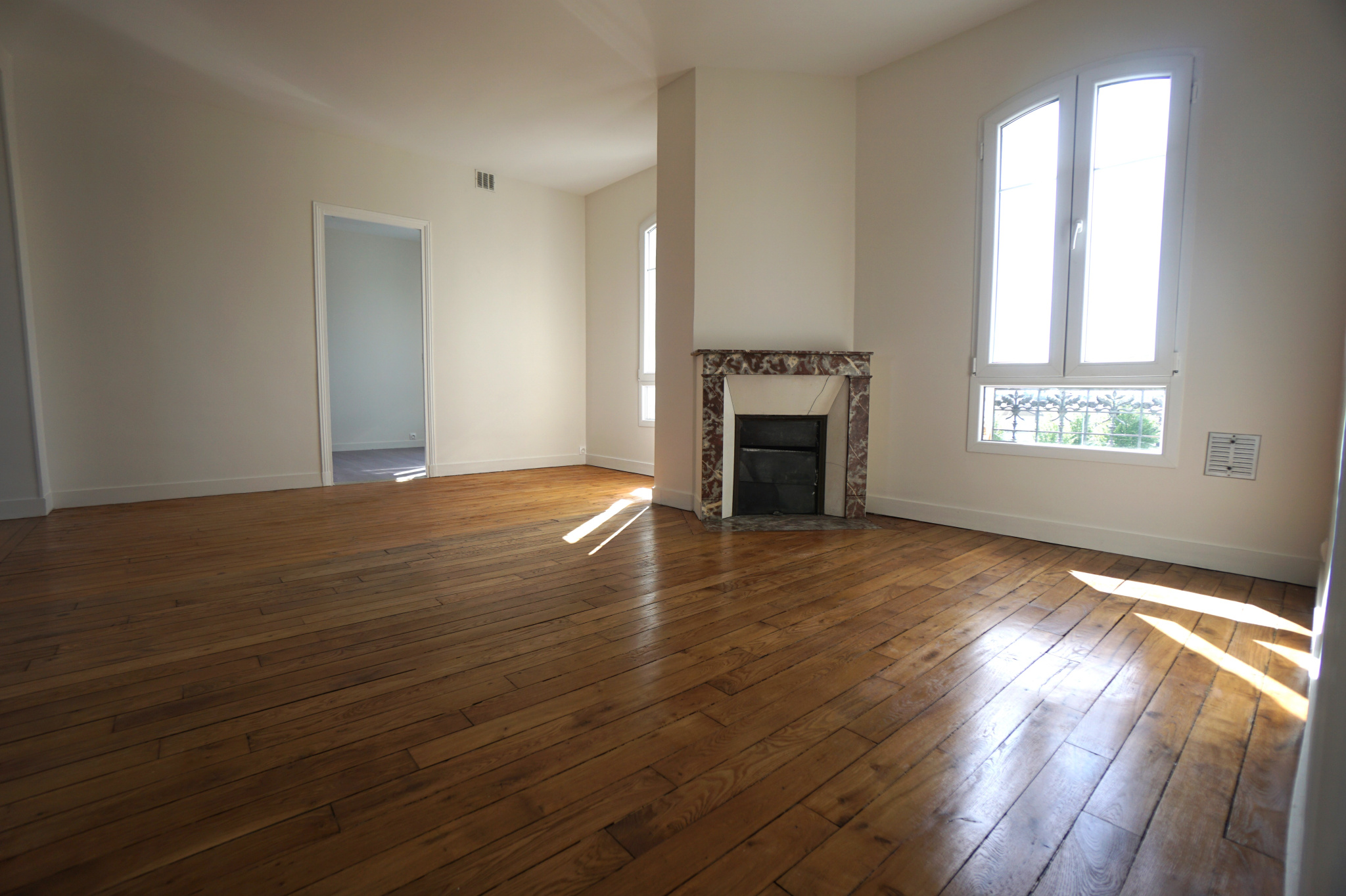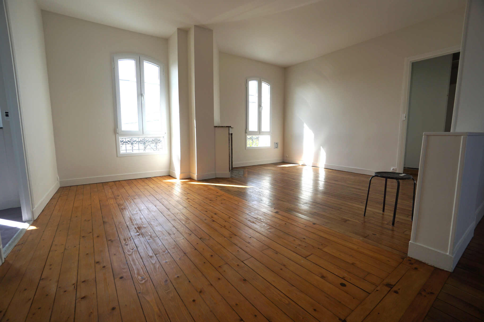 Entrée, cuisine ouverte sur salle à manger, séjour salon, 2 chambres, salle d'eau, 2 wc.