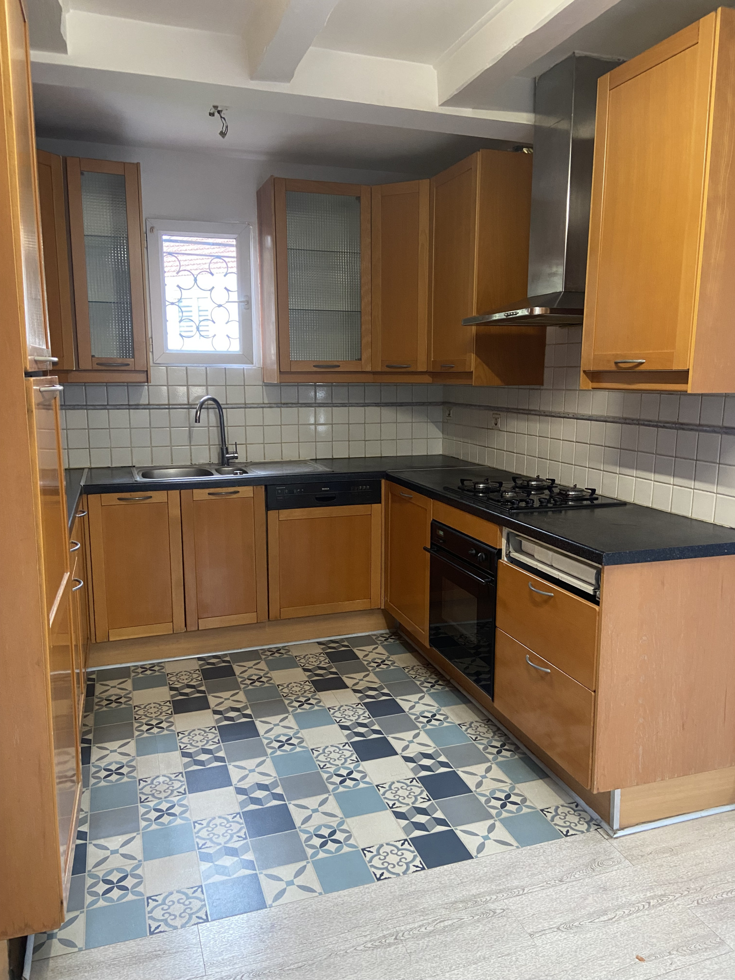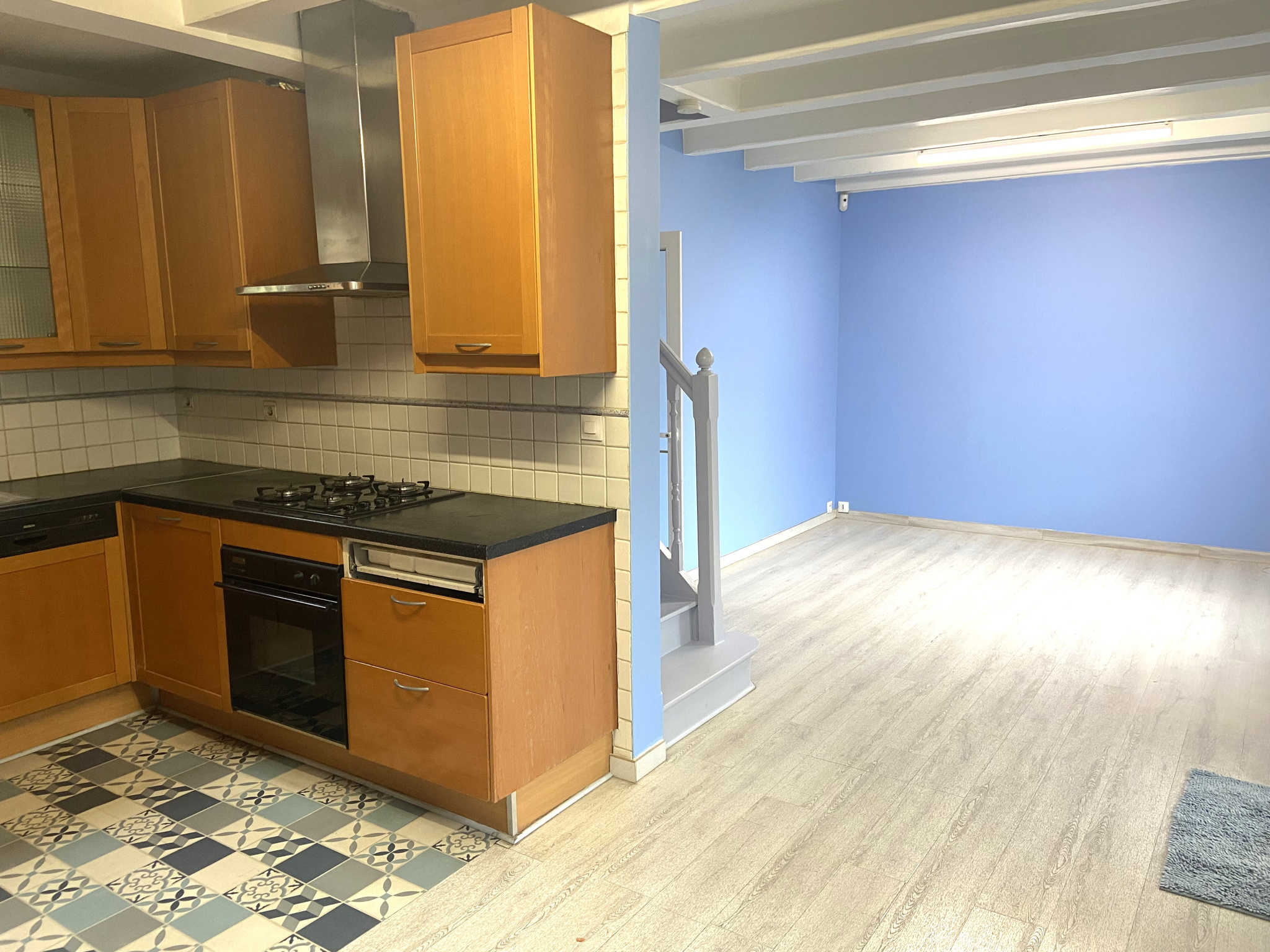Entrée sur séjour salon, cuisine équipée ouverte, 3 chambres dont 1 en rez de jardin, 2 salles d'eau, 2 wc.