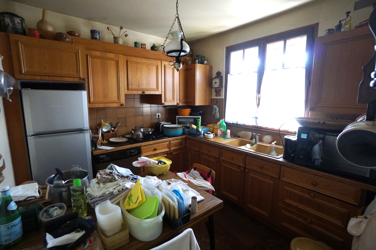 Entrée avec placards, séjour salon donnant sur terrasse et jardin, 3 chambres, salle de bains, 2 wc.