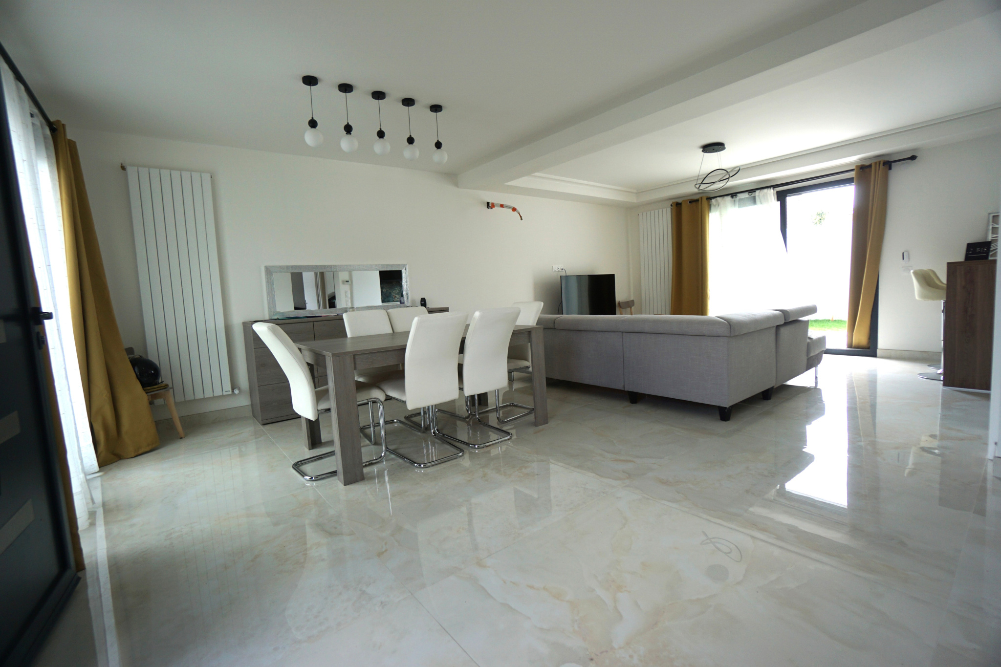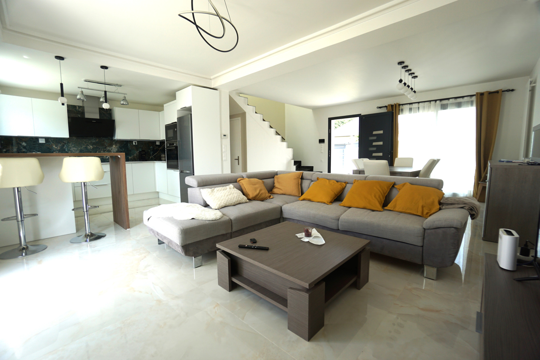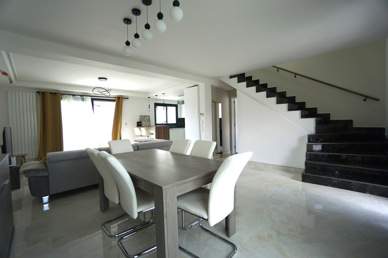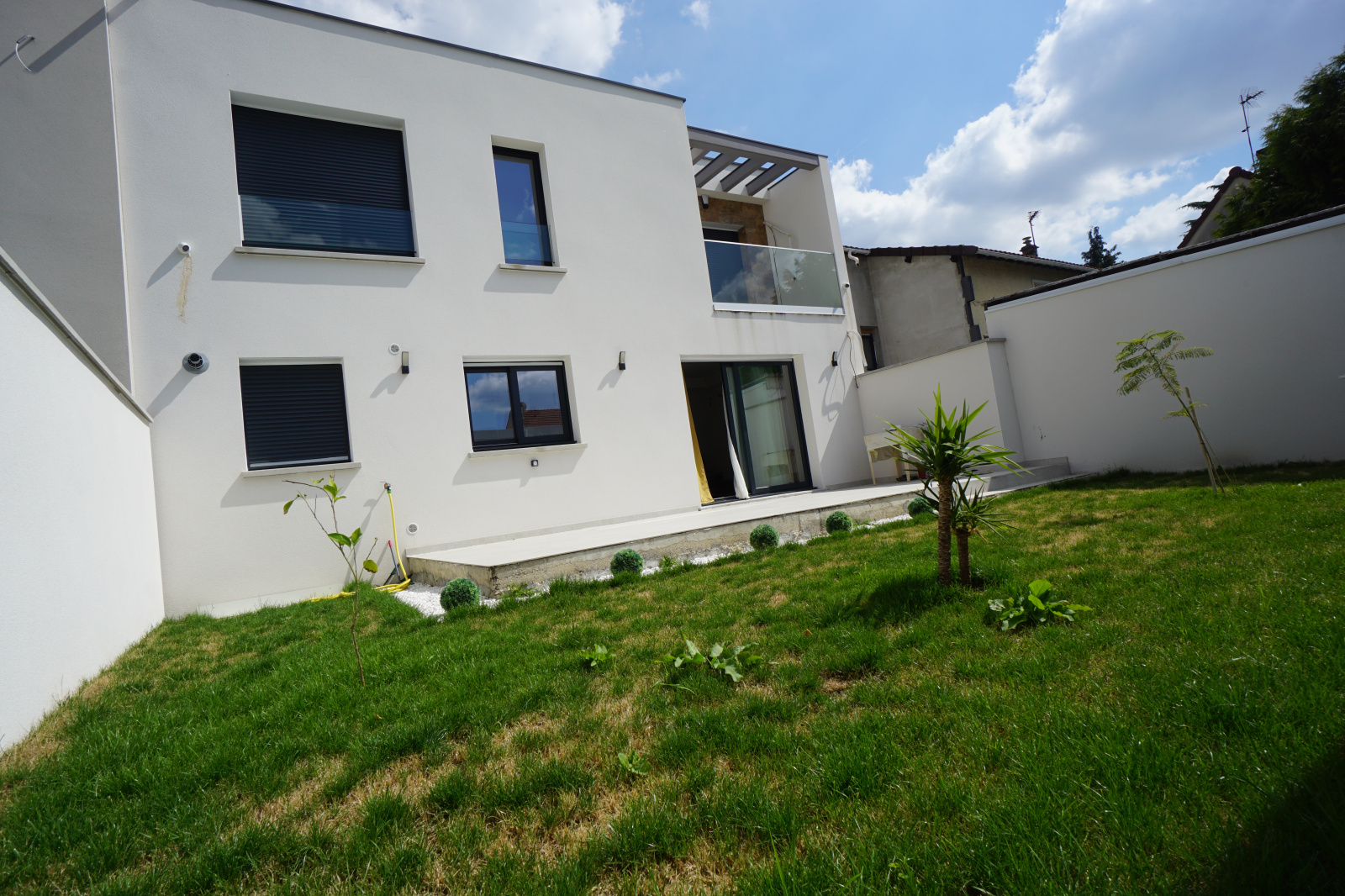 Entrée sur vaste séjour salon et cuisine équipée ouverte donnant sur la terrasse et la jardin, 3 chambres dont 1 suite parentale avec son balcon, dressing et sa salle de bains, salle d'eau, buanderie, 3 wc.