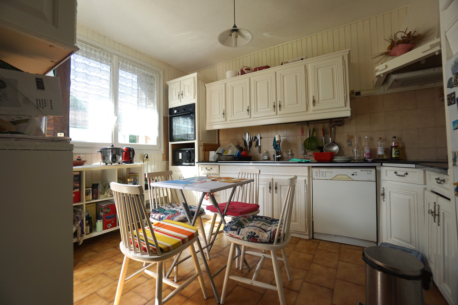 Entrée, cuisine aménagée équipée donnant sur le jardin, salon, salle à manger, 4 chambres dont 1 en rez de chaussée avec sa salle d'eau, salle de bains, 2 wc.